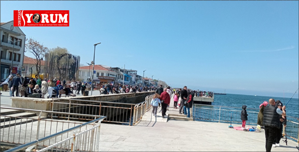 Nisan ayının ilk günlerinde 9 günlük tatilin son günlerinde havanın serin olmasına rağmen, güneşli olmasını fırsat bilen günübirlikçiler, Hafta sonu bahar havası tadında Bursalılar soluğu Mudanya’da aldı. Sahil Bulvarında adeta adım atacak yer kalmadı. Çocuklarıyla beraber gezerken denize olta atıp balık tutmaya çalışanlardan, Çocuklarını oyun parklarında eğlendirmeye çalışan aileler hallerinden oldukça mutlu görünüyorlardı. Çay bahçelerini dolduranlar nefis deniz manzarası karşısında çaylarını yudumlarken balıkçılara uğrayıp balık alanlar evlerine eli boş dönmek istemedi. Akşam karanlığına kadar sahilde bir hafta sonu geçirmenin keyfini süren Bursalılar, “ne iyi ettikte geldik, böylesine güzel bir hava kaçırılmazdı dediler”.