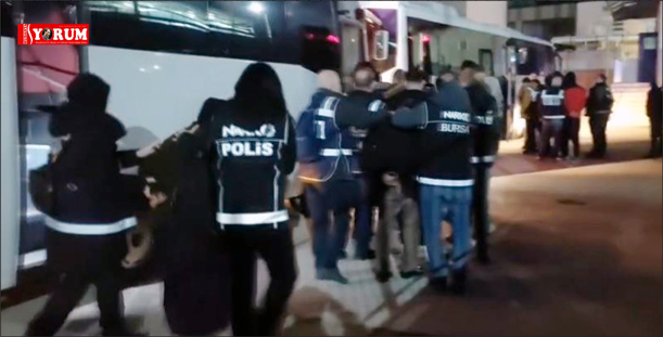Yapılan çalışmalar kapsamında; 3 İha, 130 Ekip, 10 Özel Harekat Unsuru, 10 Narkotik Dedektör Köpeği, 150 Çevik Kuvvet Unsuru olmak üzere toplam 700 personelle gerçekleştirilen eş zamanlı operasyonlarda; Bursa, ( Mudanya ve Mustafakemalpaşa ) Mersin ve Antalya illerinde toplam 76 şahıs yakalanarak gözaltına alınmış olup, adli mercilere sevk edilen şahıslardan 59’u Tutuklanmış, 17’si Adli Kontrol Şartıyla serbest bırakılmıştır.